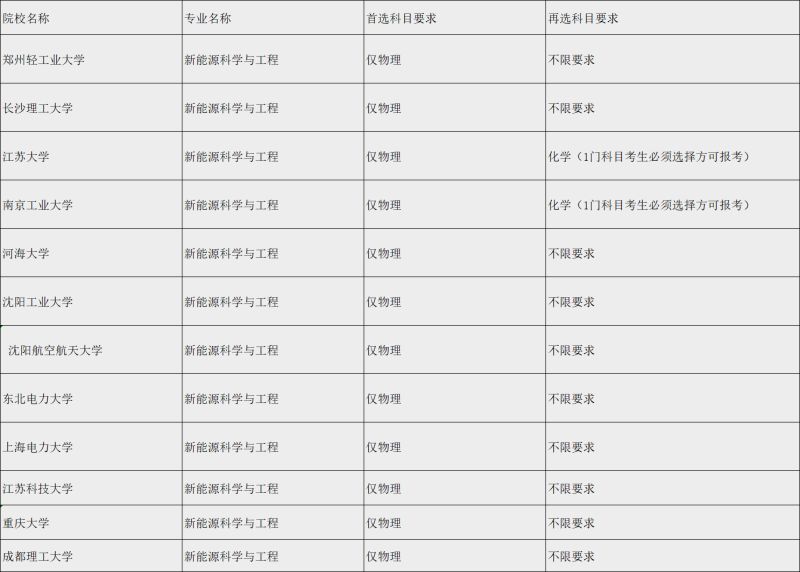 新能源科學(xué)與工程專業(yè)高考報考選考科目要求
