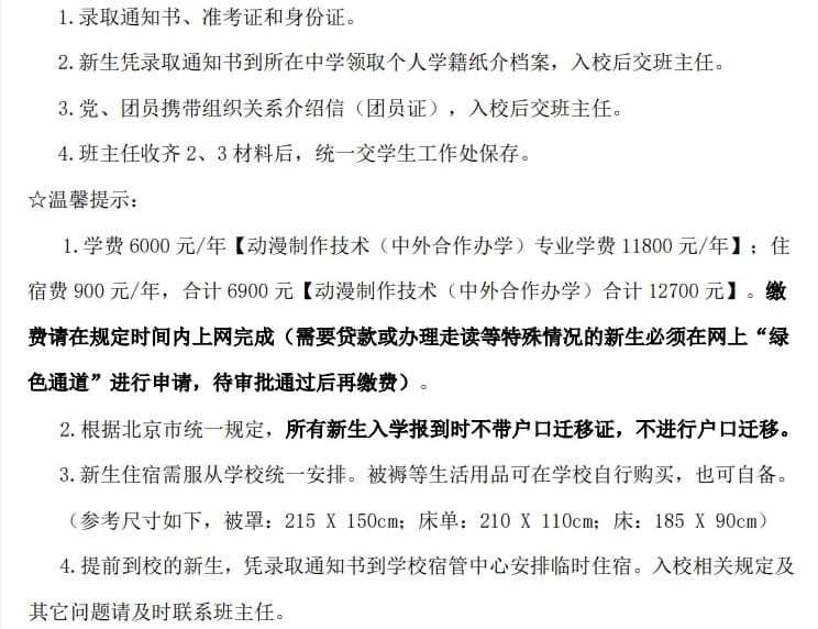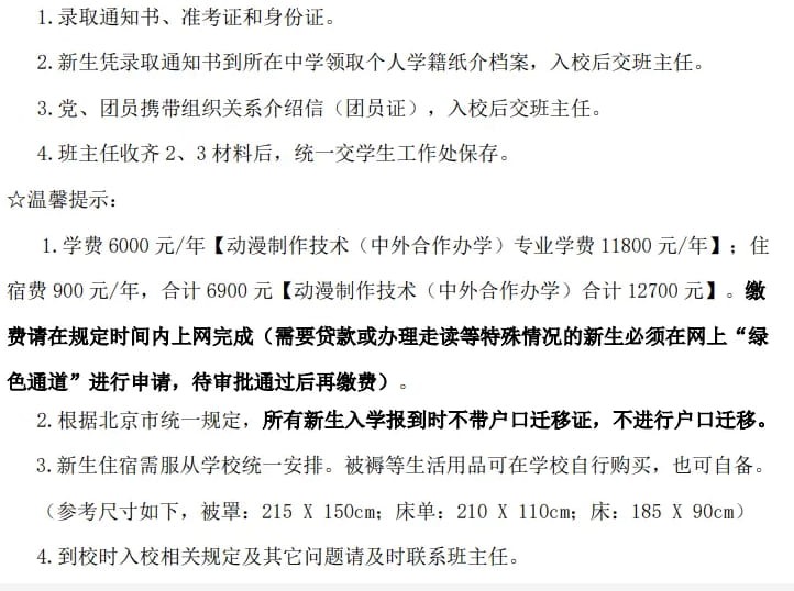 北京工業(yè)職業(yè)技術學院新生報到所需材料