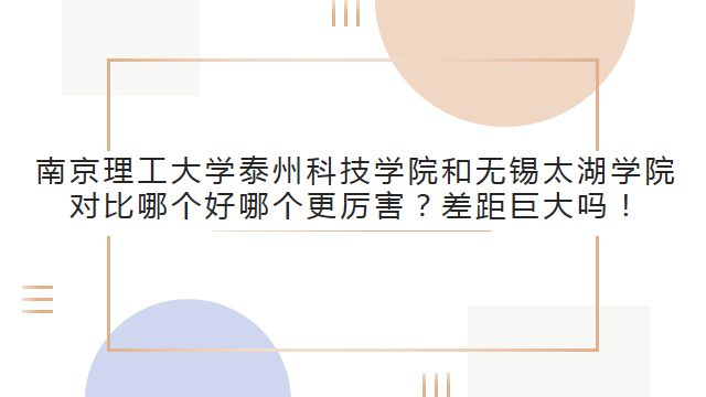 南京理工大學(xué)泰州科技學(xué)院和無(wú)錫太湖學(xué)院對(duì)比哪個(gè)好哪個(gè)更厲害?差距巨大嗎!