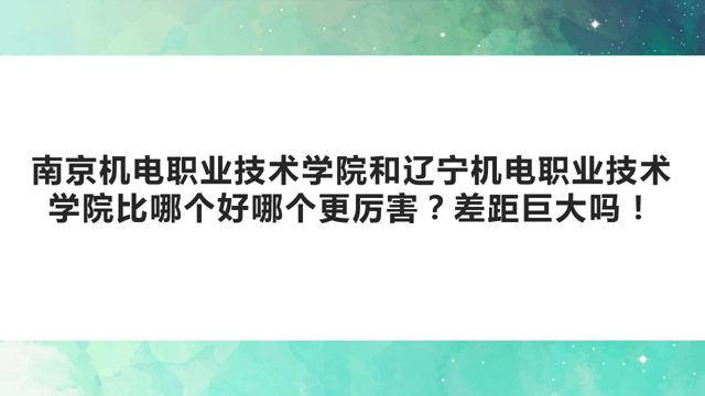 南京機電職業(yè)技術學院和遼寧機電職業(yè)技術學院比哪個好哪個更厲害?差距巨大嗎!