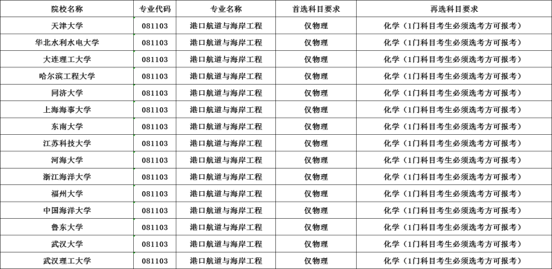 港口航道與海岸工程專業(yè)高考報(bào)考選考科目要求
