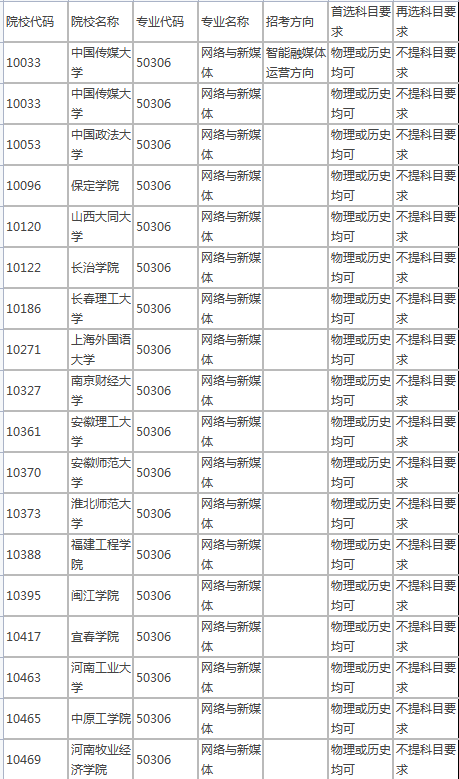 網(wǎng)絡(luò)與新媒體專(zhuān)業(yè)高考報(bào)考選考科目要求